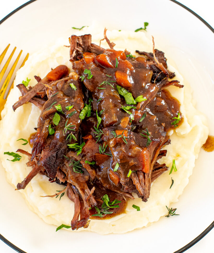 - Red Wine: Red wine adds a deep richness and color to this one-pot meal. It’s also essential for deglazing the pan to get all of the extra flavors off the bottom of the pan (aka fond).
