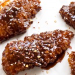 You just can’t go wrong with a sweet and spicy sauce and crispy chicken tenders. Made with soy sauce, sweet chili sauce, sriracha, hoisin sauce and sesame oil, this sauce is amazingly sweet, spicy, and tangy. Plus, you can make these chicken tenders as spicy or sweet as you’d like. If you like a little more heat (like me), add some more crushed red pepper flakes and sriracha. Yum!