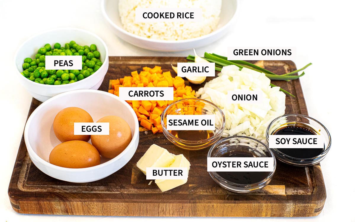 - Eggs: Are added for protein and are typical in fried rice recipes. You can omit and substitute tofu if you are allergic to eggs or simply not a fan.