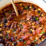 Tastes just as delicious as a meat chili! Easy and makes a ton. I used a cup of uncooked quinoa, double the corn, and did a whole 28 oz can of crushed tomatoes. Turned out great, and could feed a small army. 👌