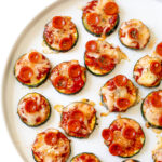 Zucchini Pizza Bites are a delicious and low-carb snack, featuring zucchini slices topped with tomato sauce, gooey cheese and mini pepperoni! They are baked until the cheese is melted and bubbly for a flavorful and healthy option for all the pizza lovers out there!